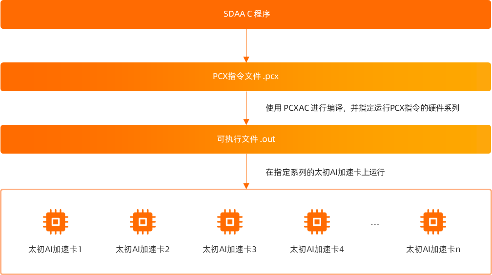 PCXAC是PCX虛擬指令集的編譯系統(tǒng),由太初元碁自主研發(fā),能夠?qū)CX虛擬指令轉(zhuǎn)換為指定系列的太初AI加速卡的機(jī)器指令,從而屏蔽不同系列硬件的底層差異,即同一版本的PCX指令集可以在太初元碁多種系列的硬件上直接編譯并高效執(zhí)行,將程序與不同系列的硬件解耦。有效解決硬件迭代快,軟件適配成本高的問題。
