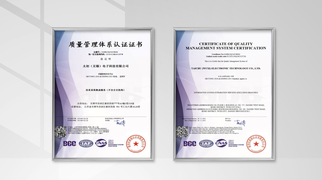 太初元碁順利通過ISO9001質量管理體系首次認證,標志著太初元基建立起了一套完善的質量管理體系,并逐步步入標準化、規(guī)范化、科學化的現(xiàn)代企業(yè)管理軌道!